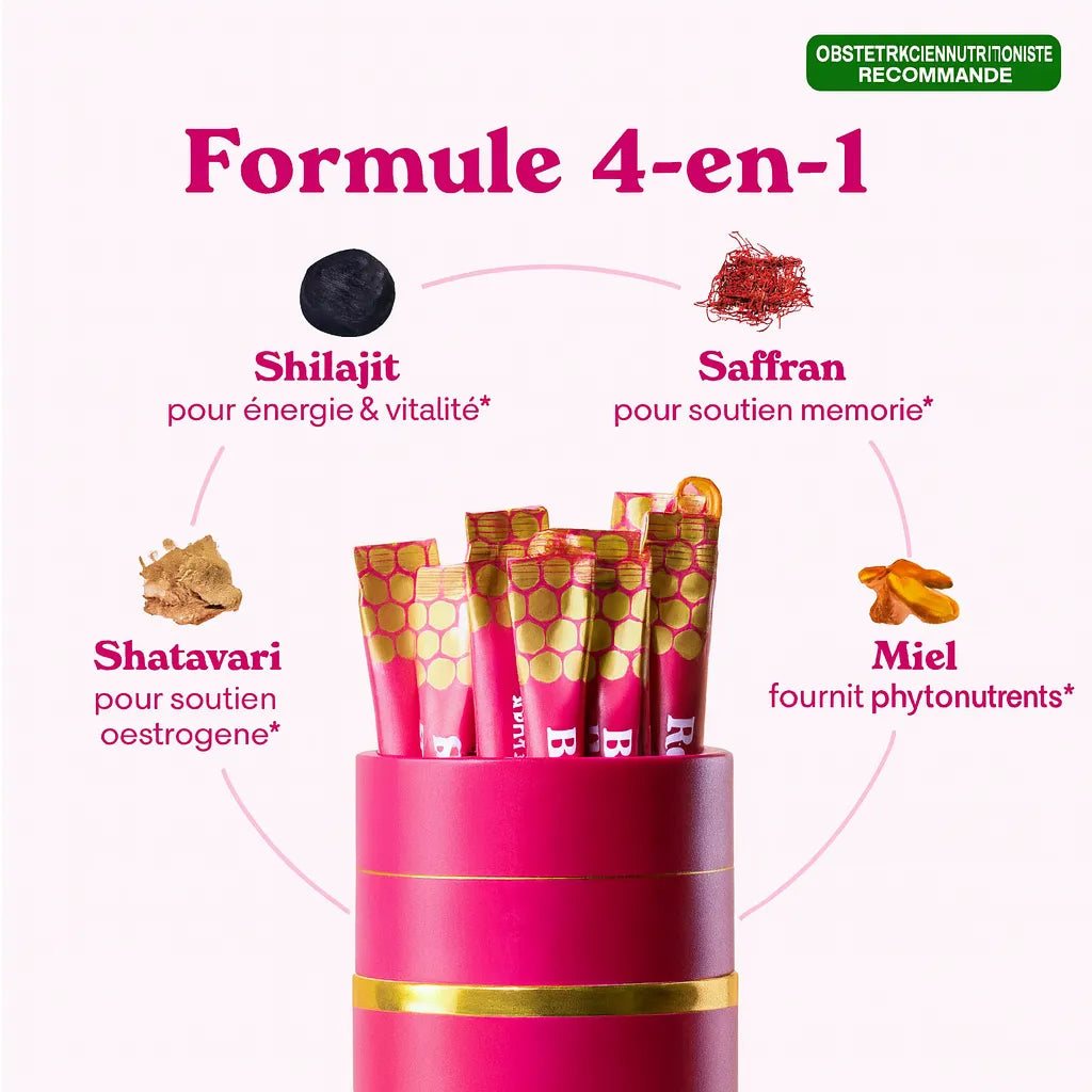 She-lajit favorise l’équilibre hormonal, une ovulation saine et améliore l’humeur ainsi que l’énergie au quotidien.